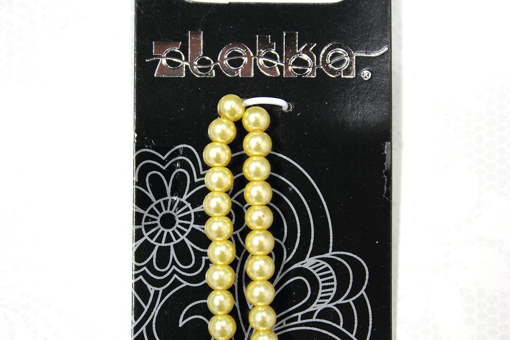 Бусины стеклянные под жемчуг 10 мм 42 шт на нити №07 желтый
